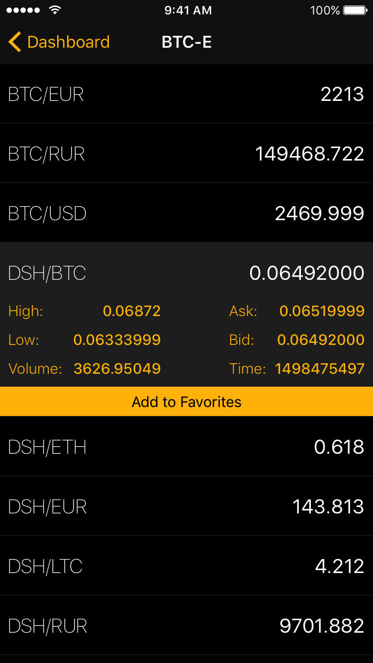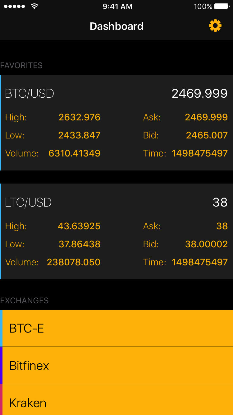 A cryptocurrency ticker that let's you follow current rates for all major coins like Bitcoin, Litecoin, Ethereum and more. You can add most important rates to a favorites list so they can be easily visible in app's main view. Additionaly access to all rates from 6 major exchanges (Wex (previously BTC-e), Bitfinex, Kraken, Bitstamp, OKCoin and Poloniex) is only a tap away. If you like the app, please consider upgrading to Premium to remove ads and unlock Apple Watch app.